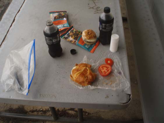 | I get my usual breakfast and am in luck this morning as there is a croissant that has not been claimed yet. I pick a couple of drinks and some trail mix to have handy for the ride. | ||