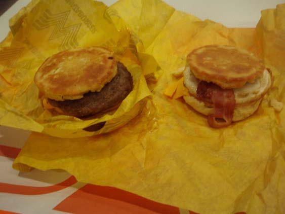 | They have some pretty tasty biscuits with the required hen fruit and pig meat in between. They even throw on some cheese to top it off. | ||
