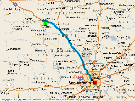 | I am making really good time as traffic is really sparse. I have rerouted my return to Natchez via I10 and then 165 with a bypass around of San Antonio. But if traffic is this light I may change my route for tomorrow just to stay on I10 through the city. | ||