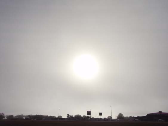| It's quite foggy this morning and the sun only appears as a muted white globe hanging in the sky. | ||