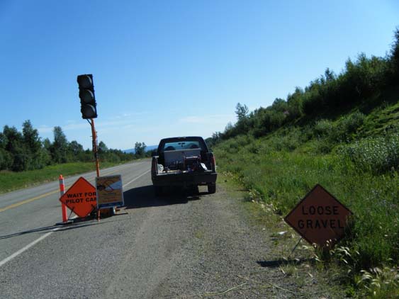 | And then every now and then you come to the construction zones with a pilot car which is usually a pilot truck. | ||