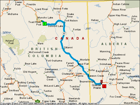 | About four hundred miles into our day we come to the world famous Dawson Creek. | ||