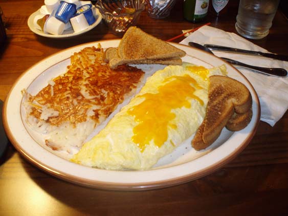 | I order my usual 'traveling' breakfast - a meat and cheese omelet and it is very, very good. | ||