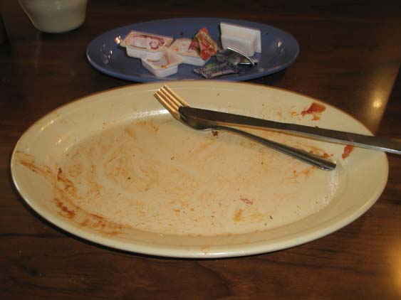 | And lest word get back to her that I didn't enjoy it, I lay waste (or is to my waist) the last bite and there no fragments that remain. | ||
