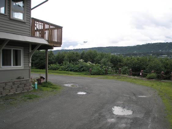 | I find my motel for the next three nights - the Beluga Lake Lodge - which sits up on a hill right above a float plane basin. I am way early and in no hurry, but Miss Barbie the manager not only lets me go ahead and check in, she gives me a nicer room that I had reserved. | ||