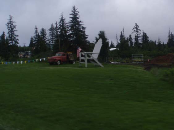 As I make my way out of Homer I notice this huge chair that I didn't see coming in. As Ron a riding buddy of mine says "Riding a road in the opposite direction is riding a different road" and he is right. You see things one way that you don't see coming from the other way and this is a prime example. |