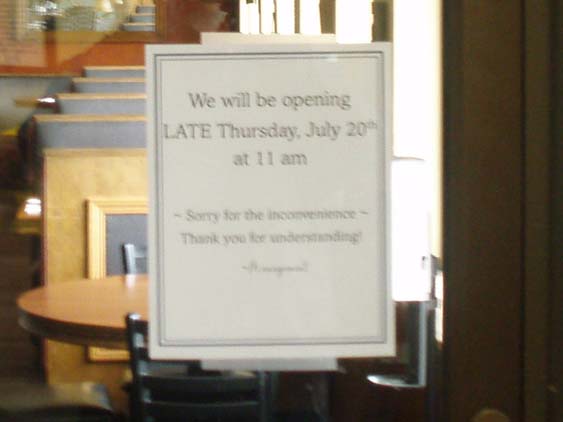 | Unfortunately "Houston, we have a problem" as I see this sign posted on their door. | ||