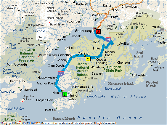 | Once I get into Anchorage proper, I leave the beautiful and isolated wilderness for the 'busyness' of Anchorage city streets. | ||