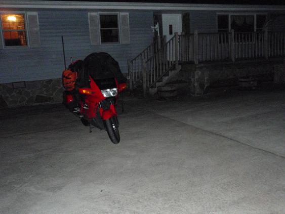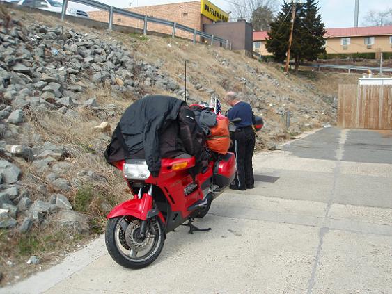 I've had a bad case of the 'road itch' for a while, so I am really looking forward to this ride. Unlike my usual forays out West, I'll be camping for most of this one. So Frost is loaded a bit heavier than usual with my camping and cooking gear. But it should be a fairly easy day of about 600 miles on the slab down to Coppell, Texas north of Dallas where Ken Hendrix has graciously offered to put us up coming and going. And as I figure, Andy shows up a little earlier which suits me just fine! |