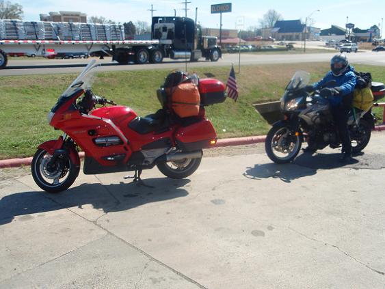 But we still have 600 miles to go, Dallas morning traffic to deal with, and the low temps we know we will hit as we head home. We get all our stuff packed up, and as we pull out I tell Ken - "Next year the Hill Country. Let's see how we can work it out. And always remember - the Holler Hotel is always open!" Ken has been a more than gracious host and Andy and I both really appreciate it. And it would be great to ride with him in the Hill Country since he is familiar with it - and probably knows of some really good restaurants! We're off and out into the fray pretty soon, but it seems as if we are headed in the opposite direction of most of the traffic. Dropping back to our 'signal then move over' strategy, we make it out of town without hitch and get back on the open road. |
