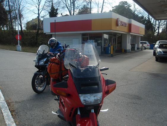 While we are waiting for our food, Andy calls his lovely wife, Faye, to check on what the weather will be as we get into Nashville. There is still plenty of snow laying on the ground around here but fortunately the roads are clear. Turns out the lows are supposed to hit 18 tonight which means a really cold ride for the last 180 miles or so. Over our meal Andy and I talk about our options - "Well, I really got cold as we came across Arkansas with that north wind hitting us." "Yep" I tell him "I almost stopped and put on my heated pants, but I figured we'd be stopping soon." I have the distinct advantage of having heating pants and heated socks as well as a heated jacket and heated gloves. Andy only has a heated jacket and heated gloves. Given the situation, he decides that his best option is to grab a motel across the way and wait until it warms up tomorrow. "Well Andy, discretion is the better part of valor. And you know what makes sense for you. My big concern is hitting a patch of black ice in the dark so I'll have to be extra careful." I've seen too many cases of where riders decide to rush on and end up in deep trouble when hypothermia sets in. I'll hate to make the last leg in the dark by myself, but I appreciate his wisdom in making the right choice for him. After we finished up our grub, we head back out to the bikes. One thing I hate about putting on the heated socks is I have to pull my boots off in the cold! But I get all suited up and wired up and I'm ready to go. "Reckon I'll see you later" I tell him. "You can just bring the stuff back when we do your rear tire - which you're gonna need pretty soon." We both laugh, and he heads for the motel and I head back to the slab. I've got the heat up at full tilt and the heated grips cooking but I can feel the wind on this one little spot on the back of neck. Without making a stop, there's no way to 'fix it', so I just motor on, counting down the miles to the Holler. With the persistent cold, I'm glad when exit 196 turns up though the heated gear is doing its job very well. It's a short run past our new church building then home. Once again I've enjoyed the road with good friends and have created some more good memories. But it will be nice to fall asleep in my own bed, under my own roof - and I do. |