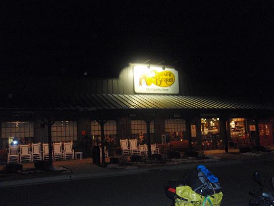 | The temps are really starting to drop, and a sense of 'accumulated fatigue' starts to set in for both of us. We are approaching over 3,000 miles on this trip of six days. Once we are out of Memphis and with a 'tankful' of home, I pull over at the same Cracker Barrel that we ate breakfast on the way out. The fire in the fireplace once again feels really good as we ponder the ride home. | ||