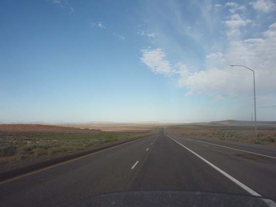 | Ahead, the road just seems to stretch out straight as an arrow into nowhere. | ||