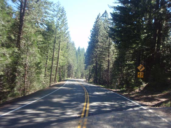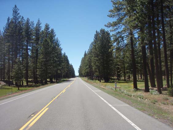 | When I move on to where Highway 44 joins Highway 89, the temperatures move more into the pleasant range as I am near Mount Lassen. This area reminds me of why I ride - temps are near perfect, my music is just right, there's no traffic and the scenery's incredible - sort of a 'perfect non-storm' all at once. | ||