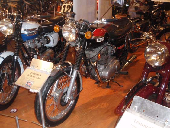 | As I round a corner, my eyes and heart immediately fixate on a very familiar motorcycle. They have a Trident 750 exactly like the one that I rode many miles on - down to the proper wrap around the air cleaner. It is the only bike that I every got rid of that I wished that I had kept. The three cylinder Tridents were a rare breed and a different animal from their two cylinder Tiger and Bonneville brethren. | ||