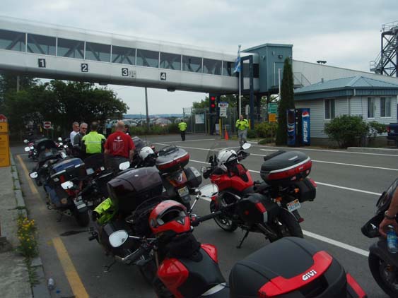 | Soon we are all lined up at the Quebec-Levis ferry terminal. | ||