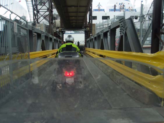 | Soon the call to loading comes and we're off down the ramp. Having done many ferry on and offs in Europe, this one causes me no concern since the ramp is dry and set up well for traction. | ||