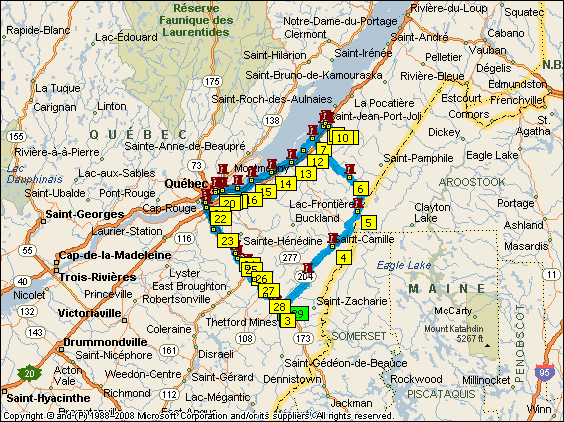 | Today will be interesting as Alain will be the leader of today's group ride for QuebecSToc. He's out early going over the route in preparation. Since this will be the first time for this group to use the 'Drop and Sweep' method of riding, I have volunteered to be the tailgunner. | ||