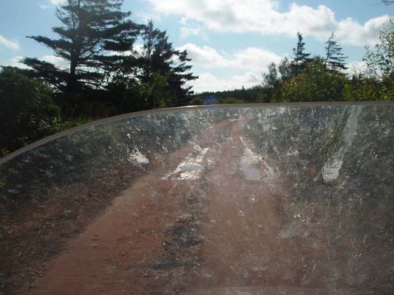 | In our pursuit of the many lighthouses that are located on the island, we are directed down this muddy pig path to practice our off-roading again. Having a fond distrust of electronic devices (I've working in technology for over forty years), I wonder if this is just another clever ploy of the little devil. | ||