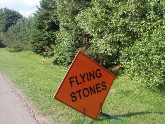 | We gingerly slip and slide our way back out to the pavement and I see this sign. I've seen a lot of flying objects in my life, but I wonder if this is some sort of extraterrestrial phenomenon. | ||