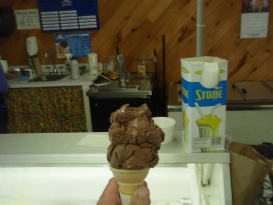 | And it just so happens that they also purvey ice cream. Feeling a bit faint from our arduous travels so far, I partake of some necessary nourishment. It must be something in the salt air, as the ice cream evaporates rather rapidly before my very eyes. | ||