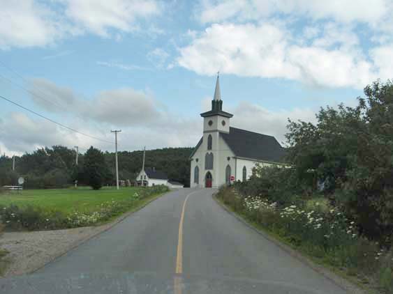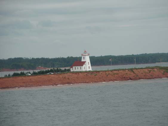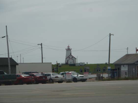 | Time is running out, so we decide we'd best head for the ferry. But the electronic fiend sends us on another out of the way trail. I tell Alain - "I'm pretty sure where we need to go, so I'll just head that way". We rush trying to make the 11 AM ferry, but as I do the calculations I realize we will have to violate several principles of physics to get there on time. So we decide we'll go for the 1 PM one instead. As we head toward the ferry, I spot a sign for the 'Point Prim Lighthouse' and make a quick turn down the road. | ||