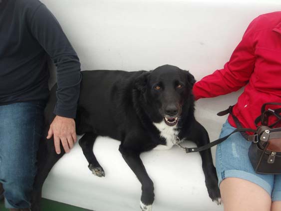 | Up on the top deck as I mill around, I see a couple and their lovely dog. I ask them - "Would be all right to pet your pooch?" "Oh certainly, she'll like that" they tell me. Her name is Miss Mollie and she and I strike up a conversation. "I can see that you are so poorly treated and not properly loved." She nods her head knowingly, but we all laugh at that comment including Miss Mollie. She's a great girl and obviously well loved by her masters - or it could be well loved by her servants. | ||