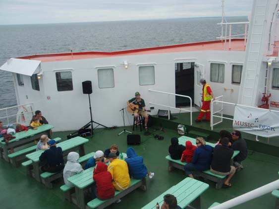 | This ferry also has a bit of entertainment by what I guess would be called a traveling minstrel. At least he has pretty much a captive audience to sing and play to. | ||