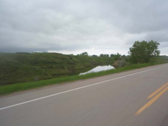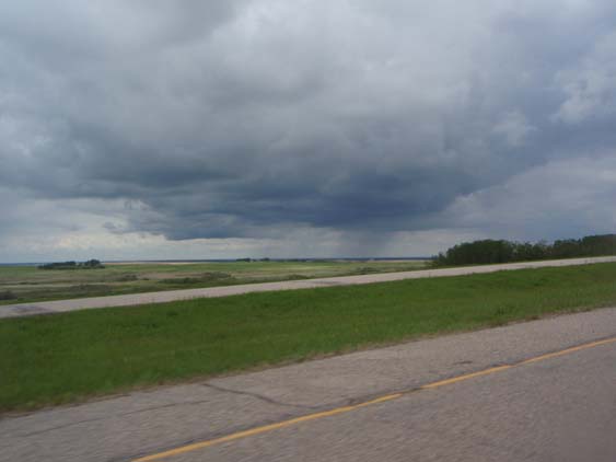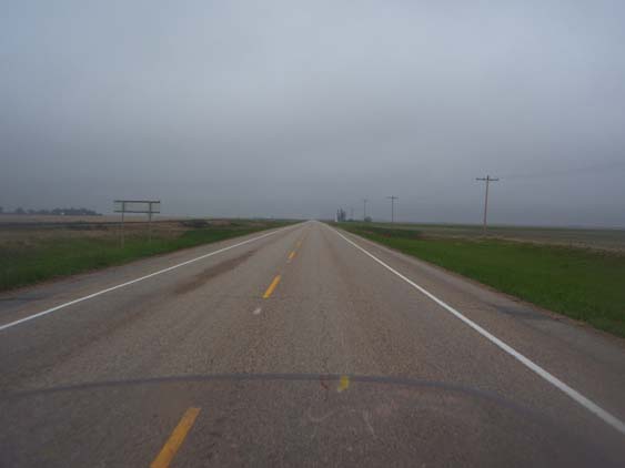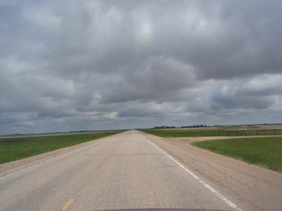 | Although the sky does not look promising, I just ride on without putting on my raingear. As flat as it is out here, I should see the rain a long time before I run into it. I've also learned to watch the oncoming traffic to see if they are using their windshield wipers. That's a pretty good indication of what they just came out of. | ||