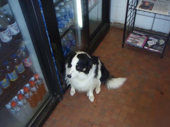 | Blackie here wants to play ball sort of, but he keeps bringing me the ball then taking it away. I love dogs cause they will love you when nobody else will. But the stomach is reminding just how long down the line has been, so I ask the gentleman who took my money - "Anywhere around here to get a good breakfast?" "Oh yeah. Just straight up the road. Smittys is good" and then he reels off some more places. I figure top of mind is good enough for me, so I thank him and head on a quest for Smittys. | ||