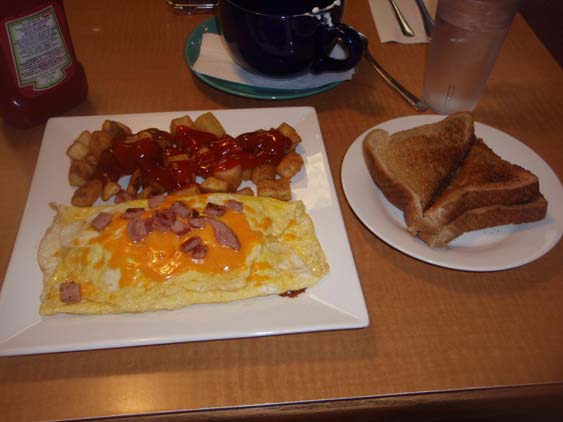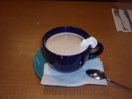 | I order my usual - an omelet of some form of pig meat and cheese and some hot chocolate. I had no idea there were going to bring me out a washtub full of it. | ||