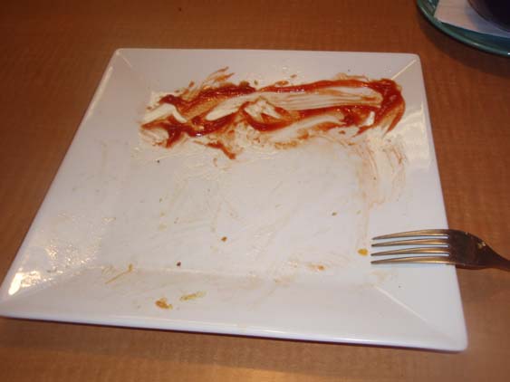 | But as I turn my head to look around, what is on the plate somehow mysteriously evaporates before my very eyes. At least that's my story and I'm sticking to it ... | ||