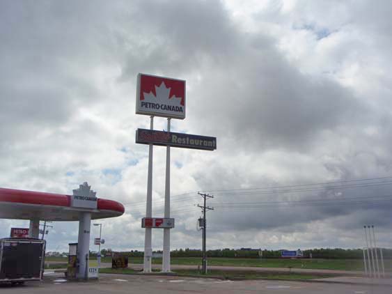 | So far there have been no prospects for anything that even looks close to breakfast. Since I'm getting close to needing fuel, I pull into the first fuel station I find in Moose Jaw. | ||