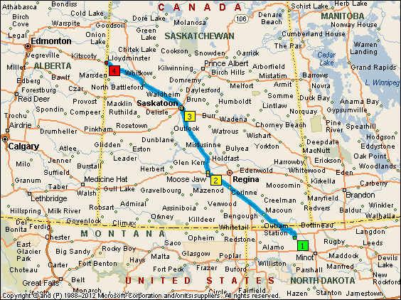 | After answering the usual questions about guns and such, they wave me on through and I now am in the 'Birthplace of Medicare' - Saskatchewan. | ||