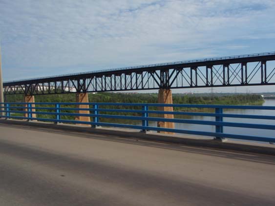 | As I whiz around Edmonton, I spot this unusual train bridge. It reminds me a lot of the truss construction used in some houses. | ||