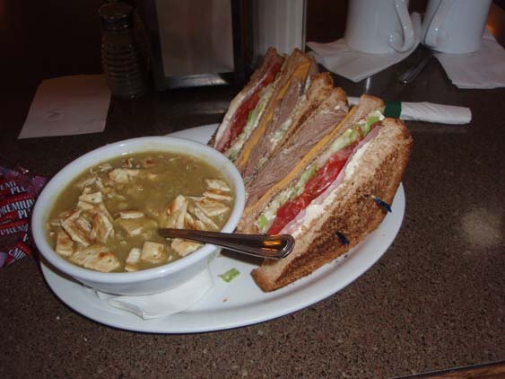 | And the cook knows how to cook so I am tickled to death. The soup is mighty tasty and the sandwich is even better. Nothing like good, simple grub done right and served with a wonderful smile. Since they do breakfast, I know where I'll be putting on the feedbag in the morning. | ||