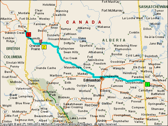 | After Whitecourt, I just kick back on highway 43 which will carry me all the way to Dawson Creek, the beginning of the ALCAN highway. | ||