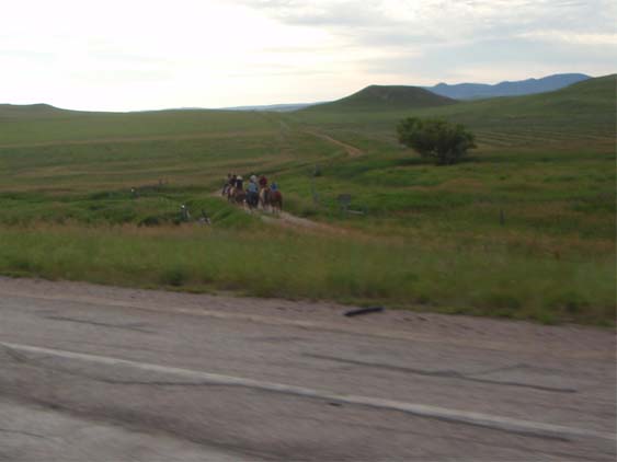| Further along I see some real cowboys that are wearing cowboy hats - not just another 'hat act'. | ||