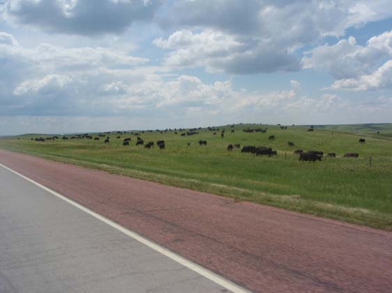 | Further down the road, I pass a cattle herd. I grew up around cattle, but we never had a herd anywhere close to this size. | ||