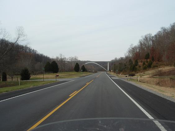 | As I make my way of town, I've got plenty of options on how to get back to the Holler. I could take highway 50 right back to the Trace, I could jump on the Interstate, I could do some combination. I decide that I'll just take highway 431 back into Franklin since I haven't been that way in a long time. It's a nice road with sweepers and good pavement and goes by some pretty farms and ante-bellum homes. Once I work my way through Franklin, I hit highway 96 which will take me back to the Trace. From this approach, I get a great view of the massive bridge they decided to erect for the Trace. | ||