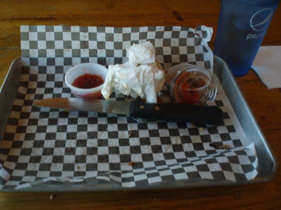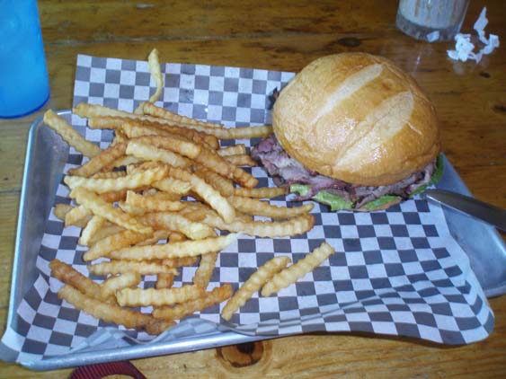 | My server notices that I am on a motorcycle so she says - "I bet you are here to get a seat built up at Russell." "Yes I am and this is where I come for lunch when I do" I say with smile. They have a killer New York Strip sandwich, but she tells me they are out of them as the delivery truck hasn't shown up. She tells me - "We do have some smoked brisket can do a sandwich with". I sign up for that cruise instead and I am not disappointed. | ||
