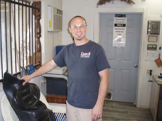 | Mike is my seat builder and is also the son of Terry, the human that Mocha lets think that he is owner. He was one of the first people to be trained on seat building by the original Russell seat builders when Terry bought the business. I tell him - "It's great that you and your dad can be in the same business and get along." So many times I've seen families working together and it turns out to be nothing battles. Mike and Terry get along great and I just think that is so neat. | ||