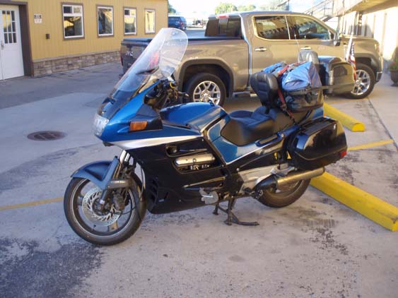 | Me and BlueBelle take a break in Kalispell before I finish up the remaining 70 miles or so of Highway 93. | ||