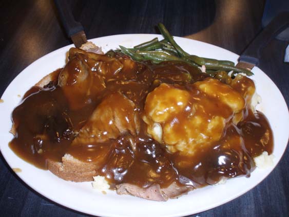 | and a smothered roast beef sandwich and mashed taters with lots of axle grease to smooth its entry. | ||