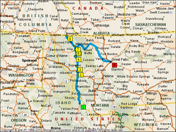| The it climbs back up into the mountains of the Bitterroot Range and ... | ||