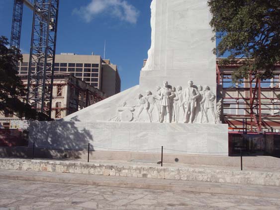 There is a modest memorial for two ladies, Adina De Zavala and Calara Driscoll, who saved the Alamo from more encroachment. The story is - By the late 1880s, the historic San Antonio missions were falling into disrepair and becoming subject to vandals. Adina De Zavala's initial efforts were towards saving these historical structures, in particular the Mission San Antonio de Valero otherwise known as the Alamo. The public entrance known as the Alamo's mission chapel was already owned by the State of Texas, which had purchased the building from the Roman Catholic Church in 1883 and had given custody to the City of San Antonio. The city had made no improvements to the chapel structure, and ownership did not include the Long Barrack, which was owned by wholesale grocer Gustav Schmeltzer. Italian-born sculptor Pompeo Luigi Coppini of the Alamo Cenotaph fame, related that Adina, accompanied by Pompeo's wife Elizabeth di Barbieri Coppini, "went out every day with our horse and buggy, calling on all the merchants of the town for some contributions of bricks, lumber, cedar posts, or wire to repair fences. These articles, in lieu of money, were to be used in repairing all the missions, the chapel of the Alamo included." Adina and her group convinced Gustav Schmeltzer to give the historical society first option to buy the the Long Barrack (or convento) structure if it went up for sale. She was notified in 1903 that the owners were considering a sale to a hotel syndicate. De Zavala enlisted heiress and historical preservationist Clara Driscoll to put up financial backing for the purchase. On January 26, 1905, Governor S.W.T Lanham signed legislation for state funding to preserve the Alamo property. The state reimbursed Clara Driscoll and, on October 4, 1905, the governor formally conveyed the Alamo property, including the convento and the mission church, to the Daughters of the Republic of Texas. |