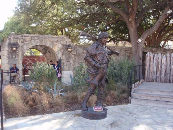 | This is a statue of one of the Tennesseans who perished in the battle - Davy Crockett. There were 32 Tennesseans who died that day defending what they believed in. That was more than from any other state among the 200 men who perished inside the fort. | ||