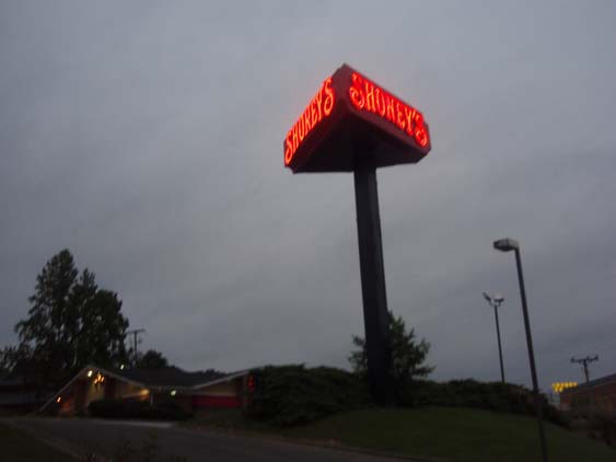 | We decide since we have a bit of distance to cover to hit Shoney's as soon as they open. | ||