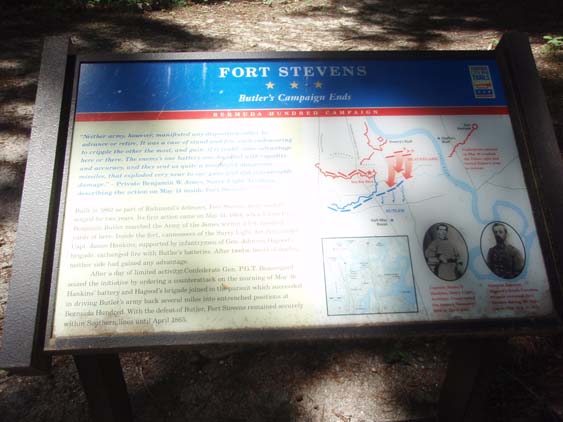 | It is the site of the Fort Stevens, part of the Confederate line to protect Richmond their capitol. It is a very quiet, nice little park with a battle map that lets us know exactly where the 17th stood during the battle. Since they fought under General Bushrod Johnson, we can see where they were in relationship to where we stand. | ||