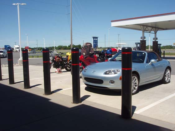 | Soon it's our first fuel/defuel stop of the day after much searching and turns out to be a very nice one. Lots of gas pumps and a nice restroom just to mention the important stuff. | ||